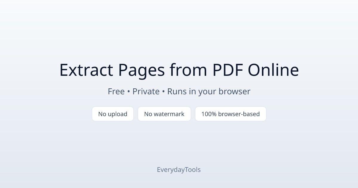 After the page loads, all processing runs in your browser. You can extract pages from a PDF without an internet connection once the tool is loaded.